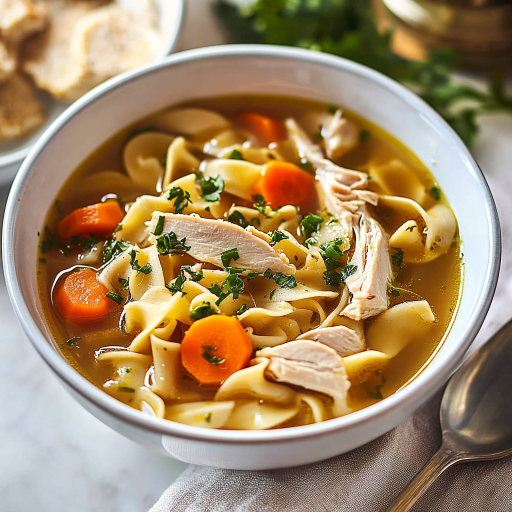 Turkey noodle soup is a heartwarming dish that combines tender turkey, vibrant vegetables, and comforting egg noodles in a savory broth. This easy recipe is perfect for busy weeknights or whenever you need a cozy meal.