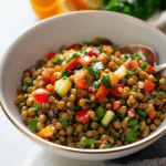 Lentil salad is a vibrant and nutritious dish packed with flavor and texture. Made with hearty lentils, crunchy cucumbers, juicy cherry tomatoes, and a zesty lemon dressing, this salad is perfect for lunch or dinner. It’s versatile enough to serve on its own or as a delightful side dish at gatherings. With minimal preparation, you can whip up this healthy salad that will impress family and friends alike. Enjoy it chilled, allowing the flavors to meld beautifully!