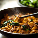 Experience the vibrant flavors of Pad See Ew, a beloved Thai noodle dish featuring wide rice noodles stir-fried with juicy chicken, fresh vegetables, and a sweet-savory sauce. This easy-to-make recipe captures the essence of street food right in your kitchen, perfect for busy weeknights or impressing friends at dinner parties.