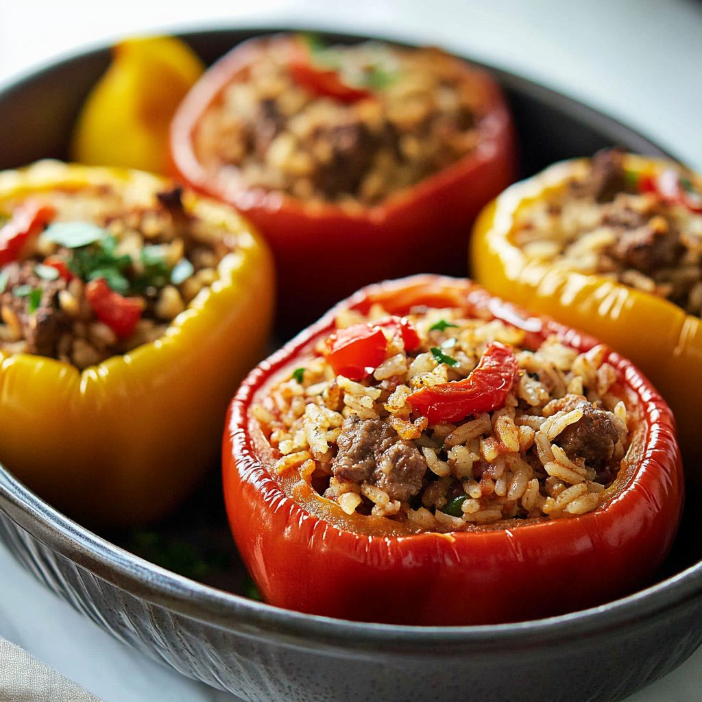 Indulge in the rich flavors of stuffed peppers filled with savory ground beef, fluffy rice, and aromatic spices. This vibrant dish not only tantalizes your taste buds but also brings warmth to family gatherings or casual weeknight dinners. With a beautiful presentation and customizable ingredients, these stuffed peppers are sure to impress.