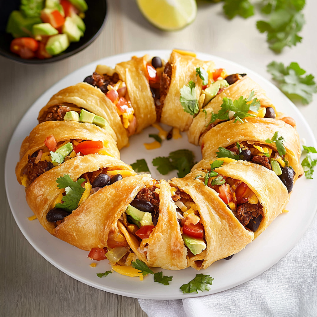 Taco Crescent Ring is a delicious and easy-to-make dish that combines a flaky crescent dough with savory taco flavors. Perfect for gatherings or family dinners, this recipe will have your guests asking for seconds! With a golden, crispy exterior and a cheesy, seasoned filling, it’s an irresistible treat that brings everyone together in just 30 minutes.