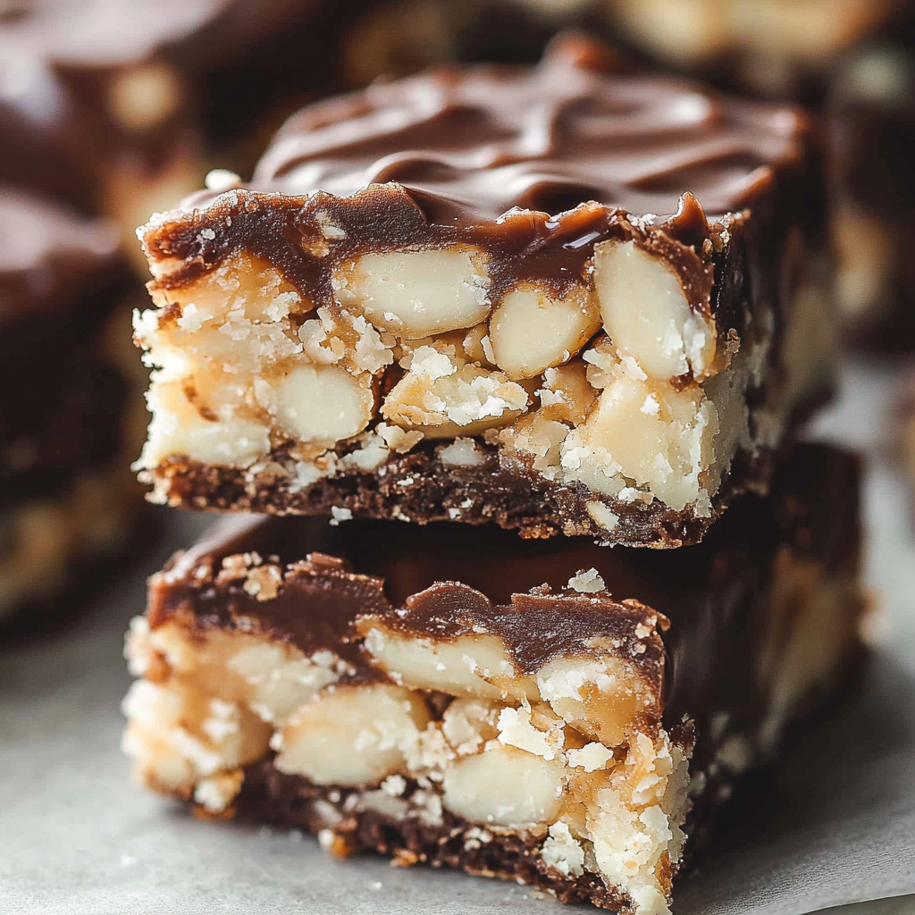 Almond Joy Bars are a delightful no-bake treat that perfectly combines rich chocolate, crunchy almonds, and sweet coconut. These bars are incredibly easy to prepare and make for an impressive dessert at parties or a satisfying everyday indulgence. With just a few simple ingredients, you can create an irresistible snack that will have everyone asking for the recipe!
