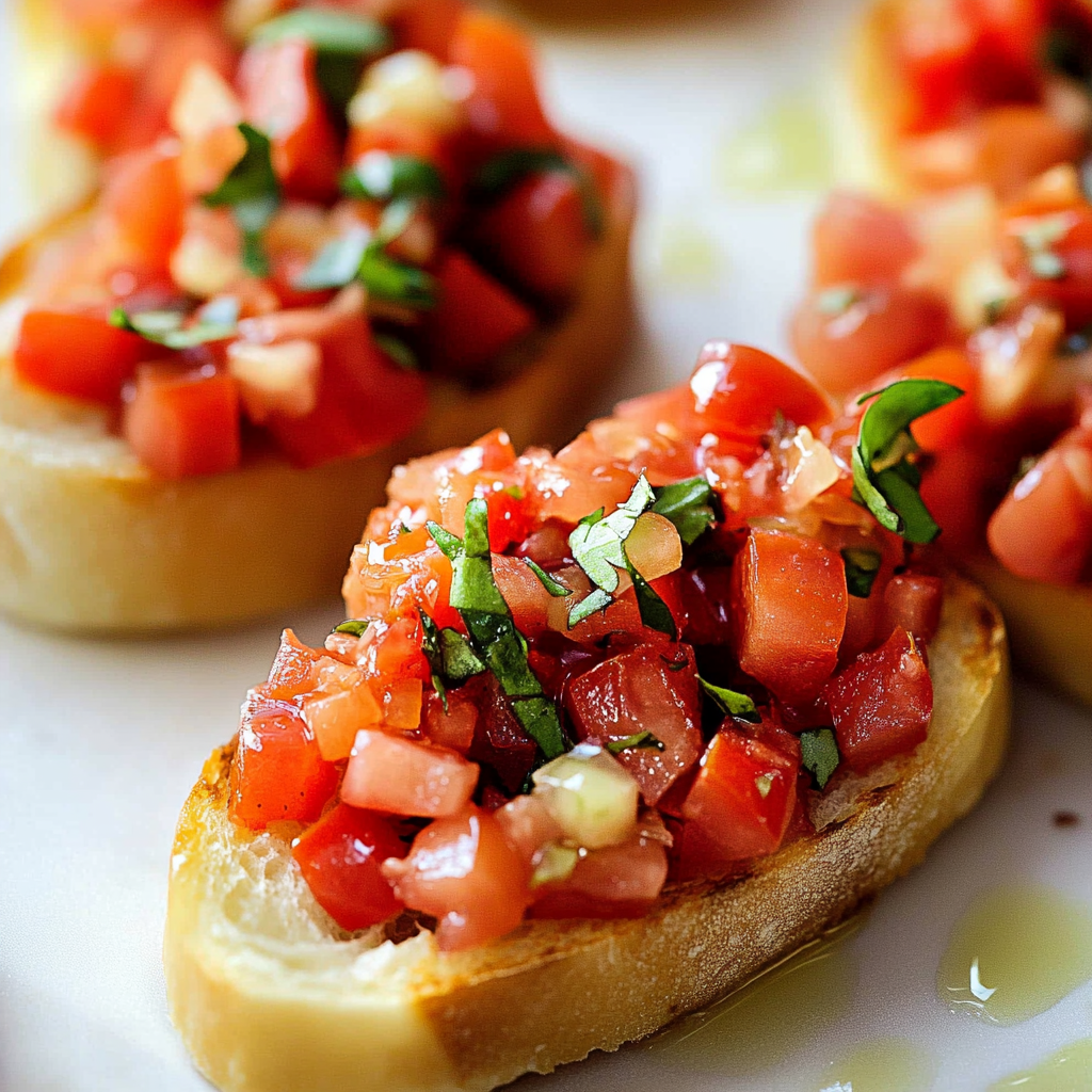 I remember the first time I made bruschetta for my friends at a summer barbecue. They devoured it faster than I could prepare more, and I was left wondering if I should have opened a restaurant instead. The delightful crunch of the bread paired with the juicy topping created an unforgettable moment that had everyone asking for seconds and thirds. Now, every gathering calls for this delightful appetizer – perfect for casual evenings or festive celebrations.