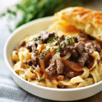 When I first made this French onion beef and noodles for my family, their faces lit up as the familiar aromas filled the room. My son declared it “better than pizza” (which is saying something), while my husband couldn’t resist going back for seconds—who can blame him?
