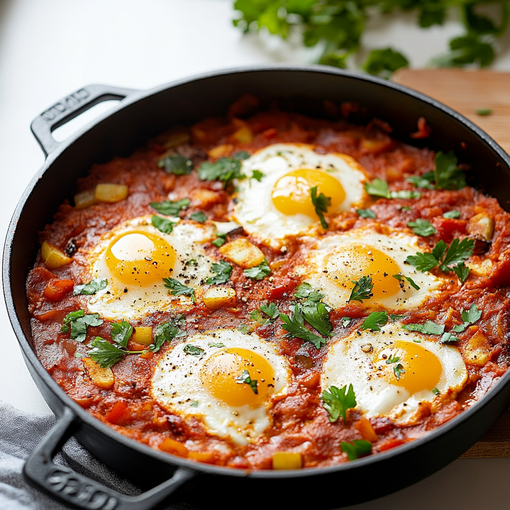 Shakshuka is a vibrant and comforting dish featuring perfectly poached eggs nestled in a spicy tomato sauce, infused with garlic and bell peppers. This North African classic is not only delicious but also incredibly simple to prepare, making it the perfect centerpiece for brunch or a special breakfast treat. Its bold flavors and stunning colors will brighten your morning and impress your guests, transforming any meal into a memorable experience.