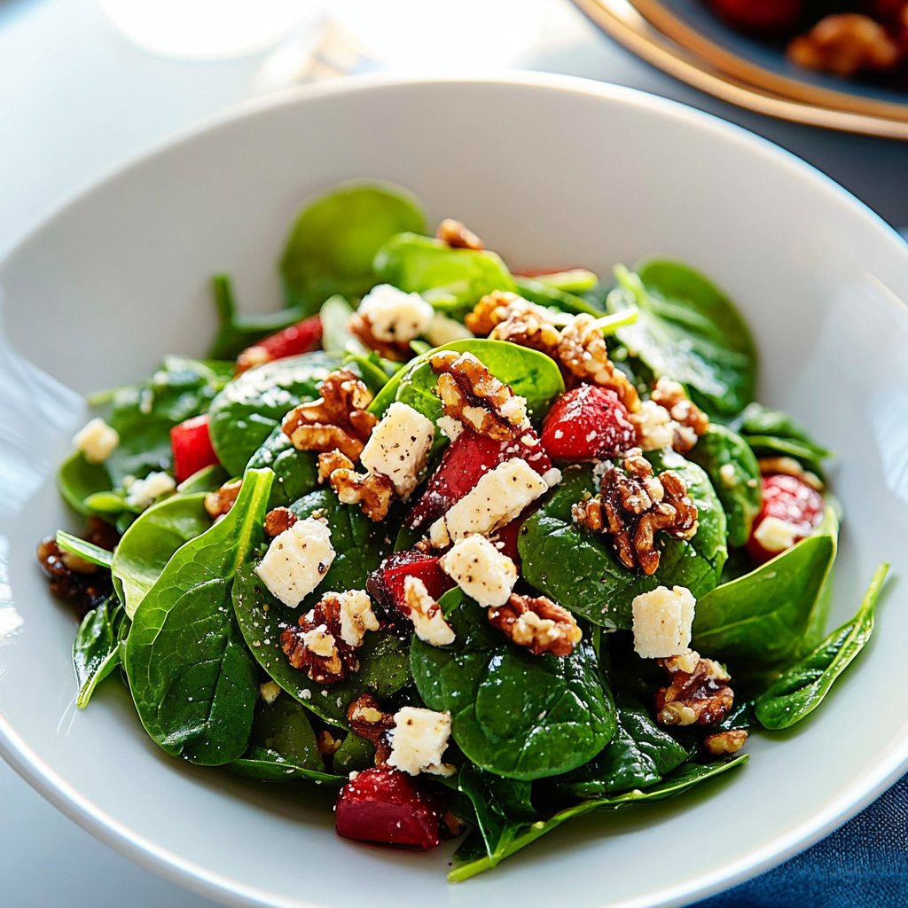 Spinach salad is a symphony of vibrant greens, peppery flavors, and delightful textures that dance on your palate. Picture this: fresh spinach leaves glistening with dressing, adorned with crunchy nuts and juicy berries, all inviting you to indulge in their deliciousness.